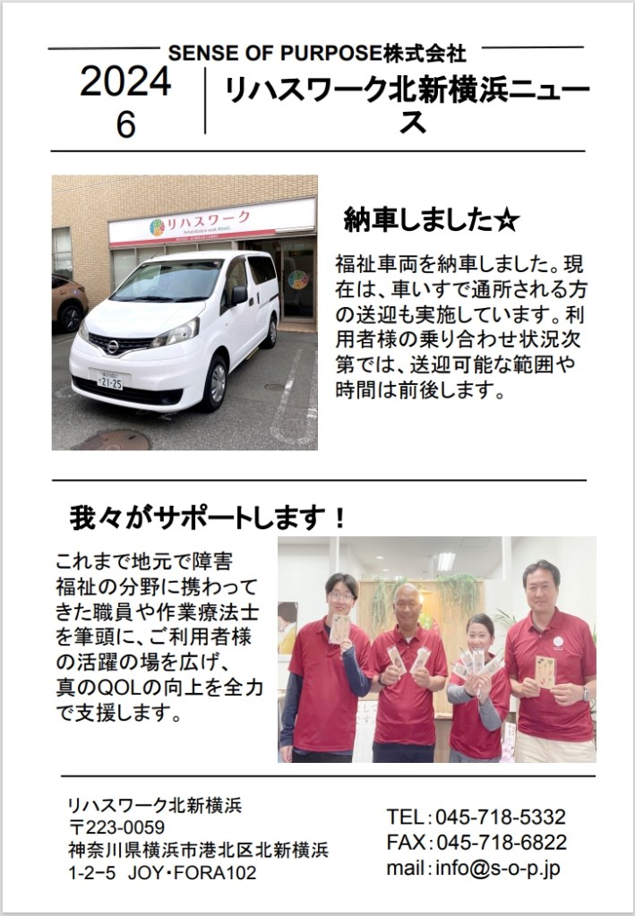 リハスワーク北新横浜は、SENSE OF PURPOSE株式会社(代表 長野 愛)が